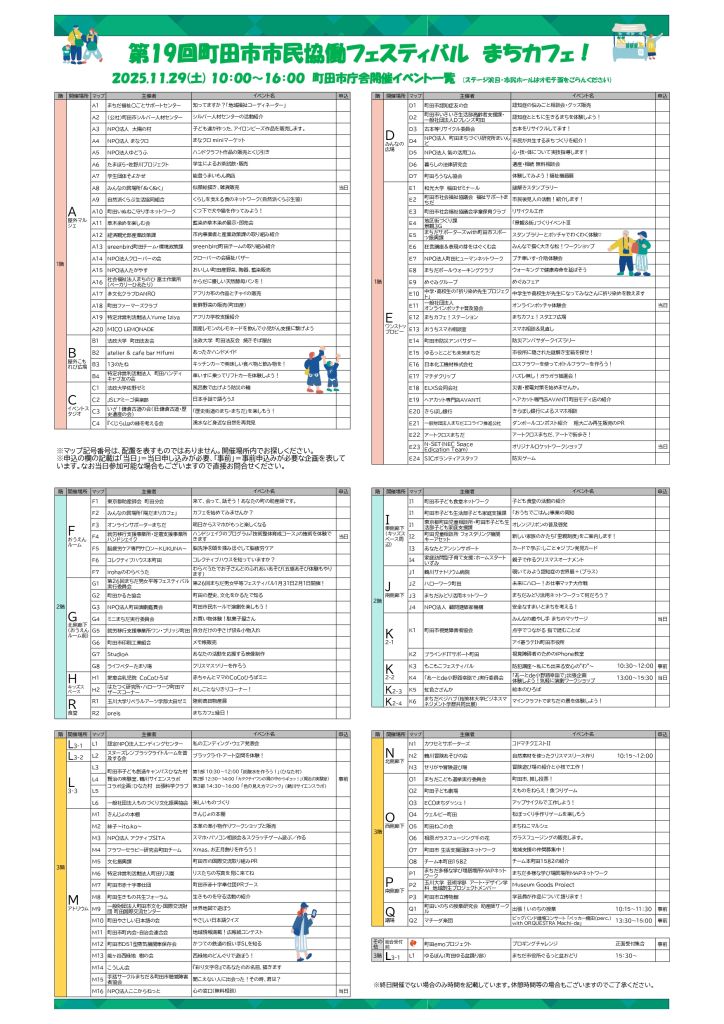 11/29(土)市庁舎・市民ホール会場の全イベントを網羅した会場マップ/イベント一覧が完成しました!当日会場の入り口で配布します。